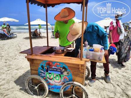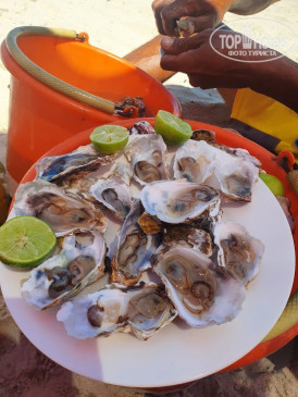 Пляж:Из отеля выходите направо и 7 минут и вы на пляже, я в основном ездил на автобусике открытом(едет почти сразу, не ждет пока займут все места, было что даже меня одного возил).На пляже через дорогу бар от отеля с кондиционером, приятно после жары там постоять несколько минут пока подают напитки).На море очень сильное течение, поэтому от берега лучше не удаляться. Брал у местных торговцев устриц по 2$ за 12 штук, очень вкусные.