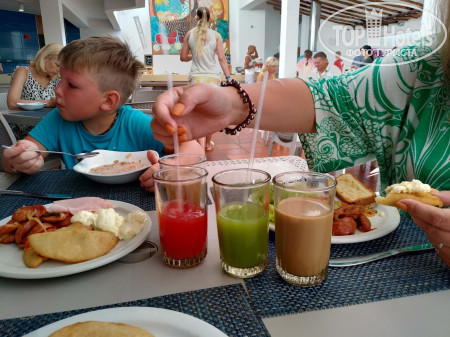 Питание без нареканий, все очень вкусно, после обеда модно перекусить в маленьком кафе за бассейном, там делаю при тебе каждый день разное - гамбургер,