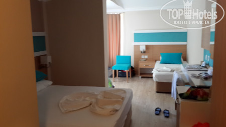Выезжаю из отеля в 02:00 ночи со 100 долларов расплачивалась за интернет (который был платный ) часть дали в евро и часть в долларах так вот они были эти 50 долларов старые в аэропорту их никто не принял , в России из не взял ни один банк очень старые и залиты чем то или липким или мокрым 🤷для детей в столовой кушать нечего мясо почти все острое , супы пряные турецкие молочные или остро-пряные томатные ! Русских мало одни немцы ! Моя дочка не ест фри и рис например ! Пюре из пакета его есть невозможно ! 2 недели сидели на макаронах 🤷море рядом один плюс за который ставлю 5 ну и вторая 5 старенький но чистенький! Не рекомендую, и не поеду больше! Сотруднику отеля который дал мне такие 50 долларов (фото прилагаю ) доллары все вернется ! Отель ориентированный только на немцев, вечером в отель скудная программа на немецком для них ко оные пью и курят просто нон стоп (а еще на русских что-то говорят что мы пьем) нам до них еще далеко! Детям тоже будет тут скучно ! Если вам нужна шоу программа и т д то вам не сюда ! Пляж чистый но вода мутновата ! Туалет на улице рядом с пляжем чистый ! Вернуться сюда не хочется!
