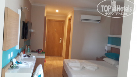 Но в целом все очень компактно и удобно расположено, нам с маленьким гиперактивным ребенком это именно это было и нужно, мы принципиально не хотели отель с огромной территорией и кучей народа. Плюс еще конечно первая линия - море рядом, но лежаки конечно очень тесно расположены и если не повезет рядом будет курящая бабуля топлес))) Пляж песок, вход плавный пологий для маленьких детей идеально.