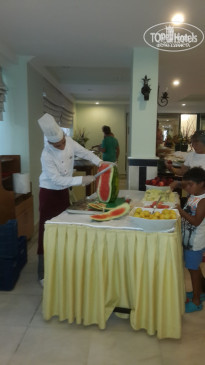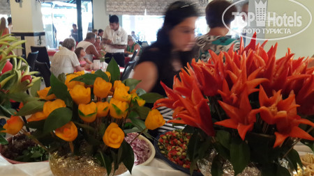 Разочаровали и при отъезде. Мы покупали тур с вылетом в девять вечера. Накануне в 18:50 пошла на ресепшен узнать информацию по выезду из отеля. Мне ответили: "Через 20 минут". Пришла ещё раз и узнала, что туроператор FUN&SUN поменял нам перевозчика, время вылета, аэропорт прилёта. Т.к. вылет нам перенесли с девяти вечера на одиннадцать утра, выезжаем мы из отеля в 6:35. Соответственно нам нужны ланч-боксы. И тут сотрудник ресепшен сообщает, что ланч-бокс можно заказать только до 19:00!