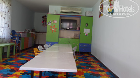 Территории у отеля практически нет, кроме небольшой детской площадки и мини футбольного поля. В детскую комнату не удалось попасть ни разу, была закрыта всегда почему-то.