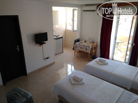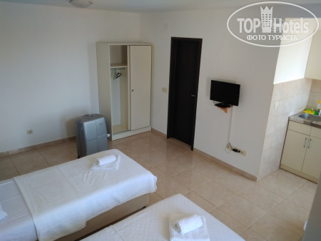 Теперь о минусах. В ванной был разбит бойлер, вернее его нижняя пластмассовая часть, и заклеена.... скотчем. Все это висело "на соплях" при самом входе в ванную-туалет. Мы ничего хозяевам по поводу бойлера сразу не сказали, и зря, так как на следующий день, после уборки номера, хозяева нас встретили и наехали. На ломаном русском начали рассказывать как мы поломали им бойлер! Да,муж задел бойлер плечом и скотч кое-где отклеился. Мы были в шоке, но донесли им мысль, что как бы бойлер был поломанный до нас. Это было не все. Телевизор, мы его включили, но он показывал кое-как один местный канал. Что-то переключали но ничего не получилось найти, мы оставили его в покое так как не особо любители телика. На пятый день отдыха нас опять встретили хозяева и опять наехали, что мы им поломали телевизор, и что теперь им нужно куда-то идти и что-то настраивать. И опять пришлось доказывать, что мы только клацали пультом и ничего другого не трогали. В общем от всех этих "переговоров" и пустых наездах настроение впечатление сильно подпортилось. Сложилось впечатление что пока нас не было в номере, они каждый день, как к себе, ОБА приходили инспектировать номер, жена убирает, он инспектирует.