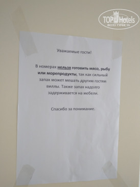 Еще момент, брали номер Студио осознано, что б самим готовить. Но на первом этаже висит листик с запретом готовить в номере мясо и рыбу! Как бы, а что готовить можно? кофе-чай и кашу? Зачем мы перелатили за номер с кухней в которой нельзя готовить?